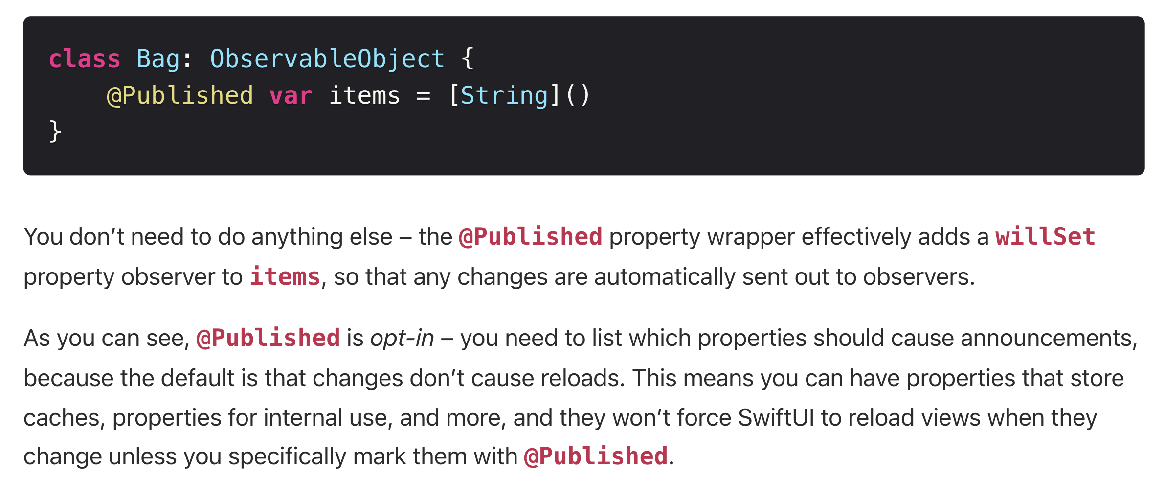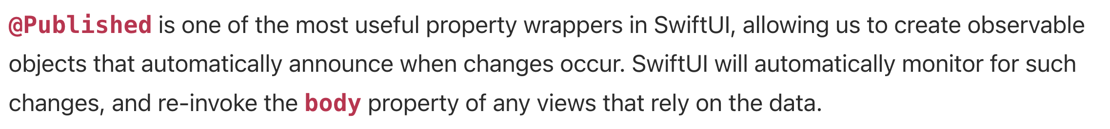 class 안에 변수를 담을 껀데 @Published로 감싸면 된다